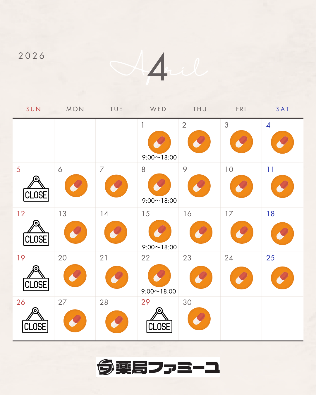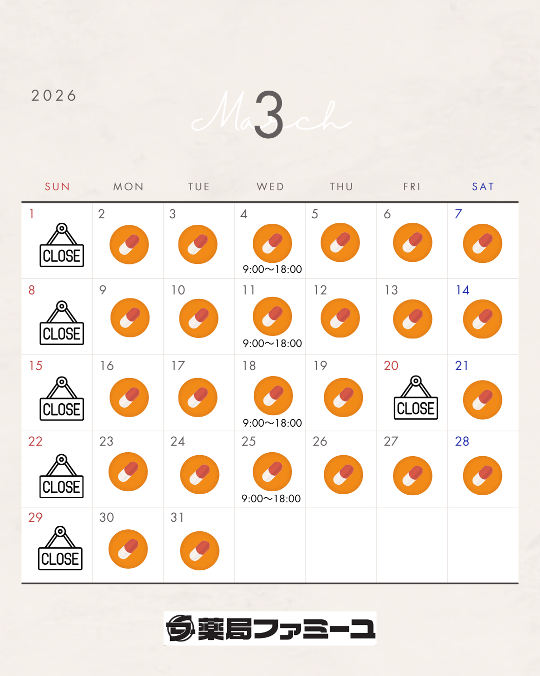 2026/2/25 当薬局は月曜日から土曜日まで休みなく営業しております。