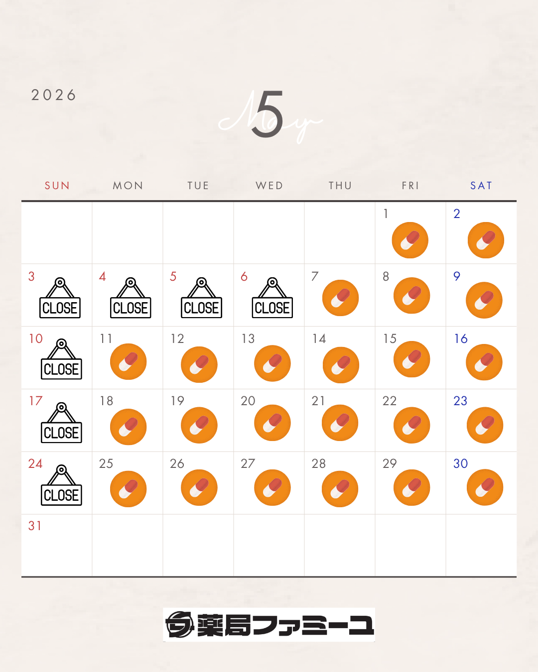 2026/2/25 当薬局は月曜日から土曜日まで休みなく営業しております。